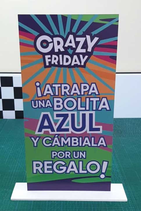 Estructura ligera y resistente a la humedad, perfecto para publicidad temporal en interiores y puntos de venta.