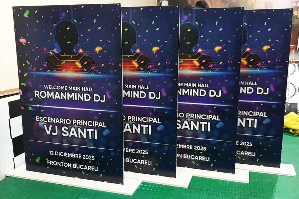 Material rígido y duradero, ideal para señalización interior y exhibición en mostradores.