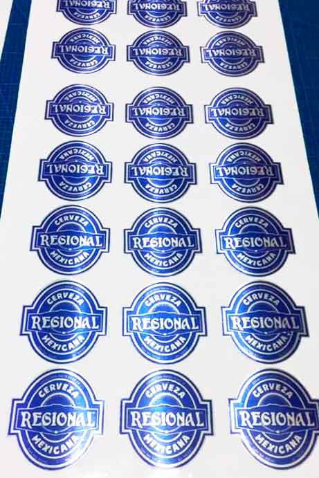 Se imprime sobre vinil transparente y se aplica sobre una base metálica (plateada, dorada, etc.), creando efectos visuales llamativos.